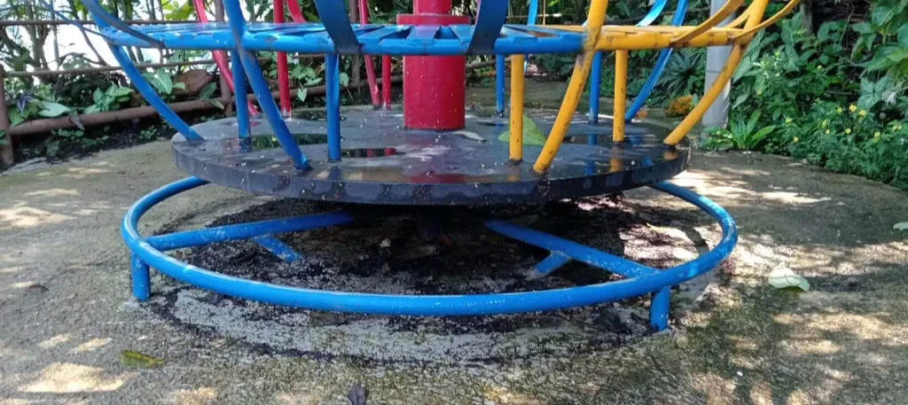 Nuestra necesidad apremiante es que el patio de juegos está al aire libre, por lo que la lluvia y el sol han dañado el metal, aunque se le realiza un mantenimiento regular. Además, los niños no pueden usarlo durante la temporada de lluvias.